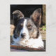 A beautiful border collie farm dog caught hiding behind a tractor trailer.
