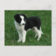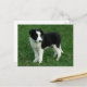 This fun canine postcard features a portrait of a young black and white Border Collie puppy dog standing in the green grass.. The back of the card is blank for your message.