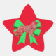 Border Collie Red Dog & Green Bow Christmas Star Sticker