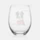 Border Collie with Red Heart Bandanna Christmas Stemless Wine Glass. Cute and happy black and white Border collie with a red bandanna around the neck with hearts.