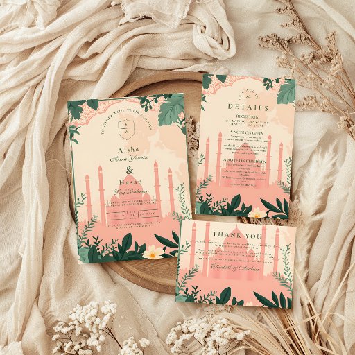 Designed to honour both your traditions and modern style, this Save the Date incorporates Islamic-inspired details such as arabesque motifs, geometric patterns, or a subtle crescent moon and star. The clean and graceful typography highlights your names and wedding date, ensuring the focus is on the details that matter most.