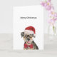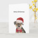 Christmas card from Border Terrier. Border Terrier wearing a bow tie, glass, and santa hat.
