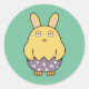 A chubby, unimpressed chick dressed as a bunny, half inside a decorated egg—Easter has never looked so bored!
