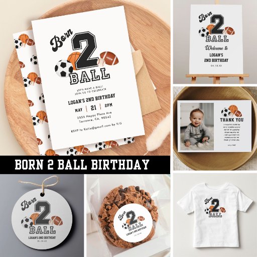 Born 2 Ball Sport Themed Boy 2nd Birthday Boy Shirt