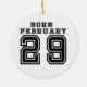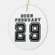 Text Born February and a large number 29. Prints, gifts, t-shirts for fun and good mood. Leap year theme. Ceramic Ornament.
