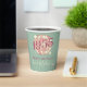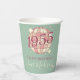 Retro Vintage-style party table decoration paper cups in pink tones on teal green background for a born in 1955 70th birthday dinner party celebration! Party paper cups.