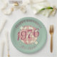 Add a touch of retro flair to your born in 1976 50th birthday party with party table decorations featuring paper plates adorned with a disco ball in pink shades against a teal blue background!