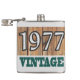 Embrace the timeless allure of 1977 with our meticulously designed hip flask, tailored for those born in that extraordinary year! This flask exudes retro charm with its captivating "1977 vintage" message, reminiscent of an era filled with iconic music and unforgettable moments. Carry your preferred libations in style and treasure this flask as a symbol of your birth year. Discover it now in our online Zazzle store and toast to the magic of '77! Gift for someone who was born in 1977. 1977 hip flask.