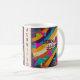 Party like it's 1981 with this totally rad personalised mug! Featuring authentic 80s-inspired bold geometric shapes and vibrant neon colours including hot pink, electric green, purple, and teal with dynamic diagonal stripes, this custom mug perfectly captures the electric energy of the awesome eighties. The design includes "BORN IN 1981" text and can be personalised with any name running vertically down the side. Perfect birthday gift for anyone born in 1981, retro enthusiasts, or 80s themed celebrations. High-quality ceramic construction ensures your morning coffee tastes as radical as this mug looks!