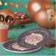 Add a touch of retro flair to your born in 1985 40th birthday party with party table decorations featuring paper plates adorned with a disco ball in pink shades against a purple background!