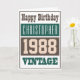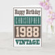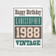 A birthday card with the year born. If your looking for a card that features the recipient's year of birth, then this one is for you. Add your choice of name and inside message. 1988