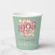Retro Vintage-style party table decoration paper cups in pink tones on teal green background for a born in 1995 30th birthday dinner party celebration! Party paper cups.