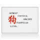 Customisable birthday greeting card with red traditional Chinese papercut of Dog and customisable cool font for year. Inside the card you can find red ideogram, character traits of the Dog Chinese zodiac sign. Perfect for birthday (people born in Dog Year). ----- "The Dog (狗) is one of the 12-year cycle of animals which appear in the Chinese zodiac related to the Chinese calendar. The Year of the Dog is associated with the Earthly Branch symbol 戌. The character 狗 refers to the actual animal while 戌 refers to the zodiac animal. (...) People born within these date ranges can be said to have been born in the "Year of the Dog", while also bearing the following elemental sign: