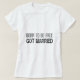 The black text Born to be free, Got Married. Got Married resembles a shattered glass. Funny, elegant, teasing white or light t-shirt for anyone. Do not forget to choose another style, colour, size and the gender of the apparel, more than 150 designs are available. What is more, you can transfer this design to another product of your choice. Just use the design icon to the right of the design information.