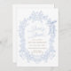 Elegant “Born to Bloom” design featuring a vintage-inspired floral frame in soft blue tones with a delicate ribbon accent. A classic and calm spring aesthetic perfect for birthdays, baby celebrations, keepsake stationery, and matching event decor.