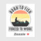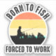 Born To Fish – Forced To Work. This funny vintage fishing accessory is great for men & women who love to catch fish in a lake or river from a boat or on a dock. Perfect for bass, trout, crappie and grouper fishermen and anglers. Do you like to go fly fishing, ice fishing, bass fishing or freshwater fishing? If so, then this fishing humour funny quote design is for you! Features distressed text & a graphic of a fisherman on a dock set against trees & a retro sunset circle.