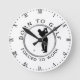 Funny golfing clock features a male golfer with golf club about to tee off. Sports wall clock in black and white with a sense of humour.