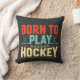 Hockey theme throw pillow with text that reads Born to Play Hockey!