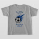 Born to play soccer forced to school- soccer ball, blue lettering, blue flames out of soccer ball
