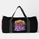 This vibrant black duffle bag features a retro-style motorcycle graphic within a shield, boldly stating "BORN TO RIDE". The colourful, distressed text and circular pattern add to its classic appeal. Perfect for motorcycle enthusiasts, this bag expresses a deep passion for riding and the open road. Edit colour of the bag caps and body in the Design tool to your favored colours.