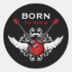Customisable rocker stickers featuring crossed electric rock guitars on red and black, wings and vintage floral ornaments.