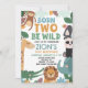 Little Boy Born Two Be Wild 2nd Birthday Invitation. This cute and whimsical boys safari or wild themed second birthday invitation features jungle and safari animals in a bohemian style. Coordinating invitations, signs, and party decorations available.