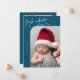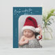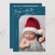 Elegant and modern Christmas theme birth announcement card featuring a hand written scrit text that says "Born under the mistletoe." This is a birth announcement card for the holiday seasons! Add your photos, birth stats, and a message! The background is teal.