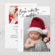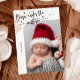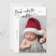 Elegant and modern Christmas theme birth announcement card featuring a hand written scrit text that says "Born under the mistletoe." This is a birth announcement card for the holiday seasons! Add your photos, birth stats, and a message! The background is white.