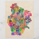 A typographic map of the Boroughs of London, United Kingdom, multi-coloured text on a vintage background