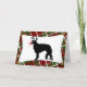 Fun Borzoi Christmas Card has a dog breed silhouette, with reindeer antlers and a bright red glowing nose. The background is a cheery holiday plaid with reds and greens. The inside reads, "Wishing you and your family a wonderful holiday season!" Personalise the message to your own easily. Cute dog lover Christmas cards.