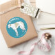 Sticker with an illustration of a Borzoi standing upon a blue background.