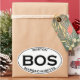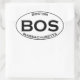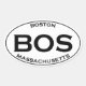 This "BOS" oval logo denotes Boston Massachusetts. One of the most famous cities in the USA, Boston is known for its harbour, maritime industry, seafood, cuisine, history, weather, local art, and other attractions.