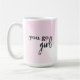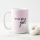 Featuring the empowering phrase "You Go Girl" in a modern style typography, the mug blends classic serif with playful hand lettering, creating a design that's both stylish and uplifting. The dynamic shapes in pink and white add a chic and vibrant touch, making it a perfect addition to your office bureau or home workspace.