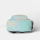 On this stylish back pack are gold luminous flowers raining down on soft muted pink, blue, and green pastels. Can be personalised on the front pocket or keep as is with the phrase "Boss Lady"