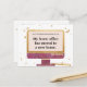 As more boss lady entrepreneurs run their business from a home office, it's becoming necessary to inform customers as well as family and friends when you're moving to a new address. This moving announcement postcard can serve both groups of people at the same time. A computer monitor displays your moving announcement on front of the card, and, if you don't wish to include an email address there, you could insert your website, Instagram name or delete that text. The details of your move are on back of the card, along with space for additional info as needed. Text on both sides of the card can be easily revised on the "Personalise" template. If you prefer to mail your change of address announcement in an envelope, you'll find a flat card in the same design in the Home Office Moving Announcements Collection.