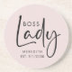 Boss Lady Logo Blush Pink Personalised Sandstone Coaster... A unique holiday stocking stuffer or birthday gift for a boss babe female entrepreneur. If a woman in your life owns her own business, here is a thoughtful birthday or Christmas gift... a custom design blush pink sandstone coaster with an artistic Boss Lady logo above the entrepreneur's name and the date her business was established. It's easy to revise the name and year on the personalisation template.