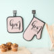 Boss Lady Logo Kitchenware Gift Idea Oven Mitt & Pot Holder Set... A thoughtful Christmas or birthday gift for women business owners, our oven mitt and pot holder set features the Boss Lady logo on a blush pink background.