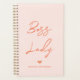 Surprise your female boss with this Boss Lady Modern Pastel Orange Script Personalised Planner. Everyone can always use a planner especially when it's a trendy modern design. Both sides are designed with a blush coral orange background. The front has "boss lady" in dark orange terracotta trendy hand written script lettering. A small pastel heart is below the text. Name is in minimalist matching letters across the lower middle.
