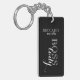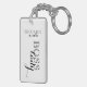 This elegantly scripted Boss Lady keychain with space to add a custom name is in white with a black background