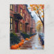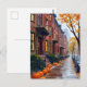 Boston Autumn Brownstones Pumpkin Watercolor Postcard