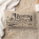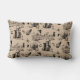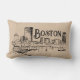 Boston as seen from across the river. Vintage-style sketch with distressed lettering. Reversible pillow has a Boston toile pattern on the back. It looks traditional from a distance, but there are details any true local will relate to, like construction cranes and bewildering traffic signage.