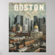 Boston, Boston Massachusetts City Skyline With Map Poster