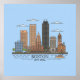 cityscape, watercolor, travel, usa, urban, silhouette, architecture, michael tompsett, buildings, watercolour, cities, tompsett, panorama, city skyline, boston city skyline