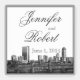 This modern wedding invitation set, called Boston Destination Wedding has a bright white background. There is a double border in black and at the bottom an illustration of the Boston skyline. This set has invitations, save the date cards, response cards, thank you cards, table number tent cards, envelope seals, wine labels, binders, return address labels and many more day-of wedding stationery pieces, favours, and gifts available. Use the envelope seal stickers for any of your DIY gifts - these are available in both large and small sizes! All elements are printed on our high quality products, they do not include any real gold, jewels, embossing, or other textile elements. All designs are copyright Noteable Expressions, Inc. All rights reserved.