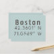 Modern, urban graphic features latitude and longitude coordinates of Boston, Massachusetts