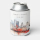 Boston Massachusetts City Scape Watercolor Wedding Can Cooler