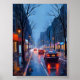 This hand-painted watercolor design is inspired by a rainy city street in downtown Boston, where reflections shimmer across wet pavement and lights glow softly through the mist. Moody blues, historic architecture, and urban details come together to create atmospheric cityscape wall art perfect for modern home décor, travel prints, and urban watercolor collections. Each brushstroke captures the quiet beauty of rain in the city—making this piece ideal for Boston artwork, rainy street paintings, and expressive city watercolor décor.