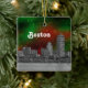 Boston Skyline Etched Green Red Starry Sky Xmas Ceramic Ornament