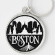 This fresh black-and-white illustration of the Boston skyline features many familiar landmarks, including the capitol building, the custom house tower, the Hancock, Old Hancock, and Prudential buildings, as well as the Zakim bridge and financial district.
