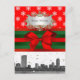 For the Christmas holiday: Customisable invitations, cards and party accessories with an etched look water view of the Boston skyline with snowflakes against a red background and red and green satin look ribbon.